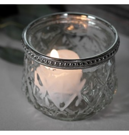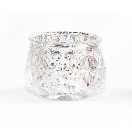 Diamond Etched Silver Rimmed Votive Candle Holder